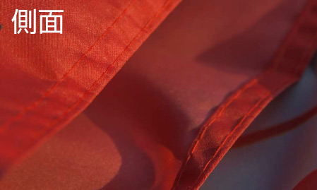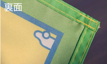 | のぼりの縫製状態です。四辺三巻縫製加工でほつれ防止をしております。 ※通常便のものに限ります。短納期版はこの仕様ではございません。 |